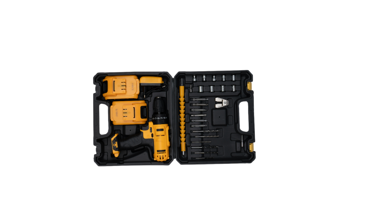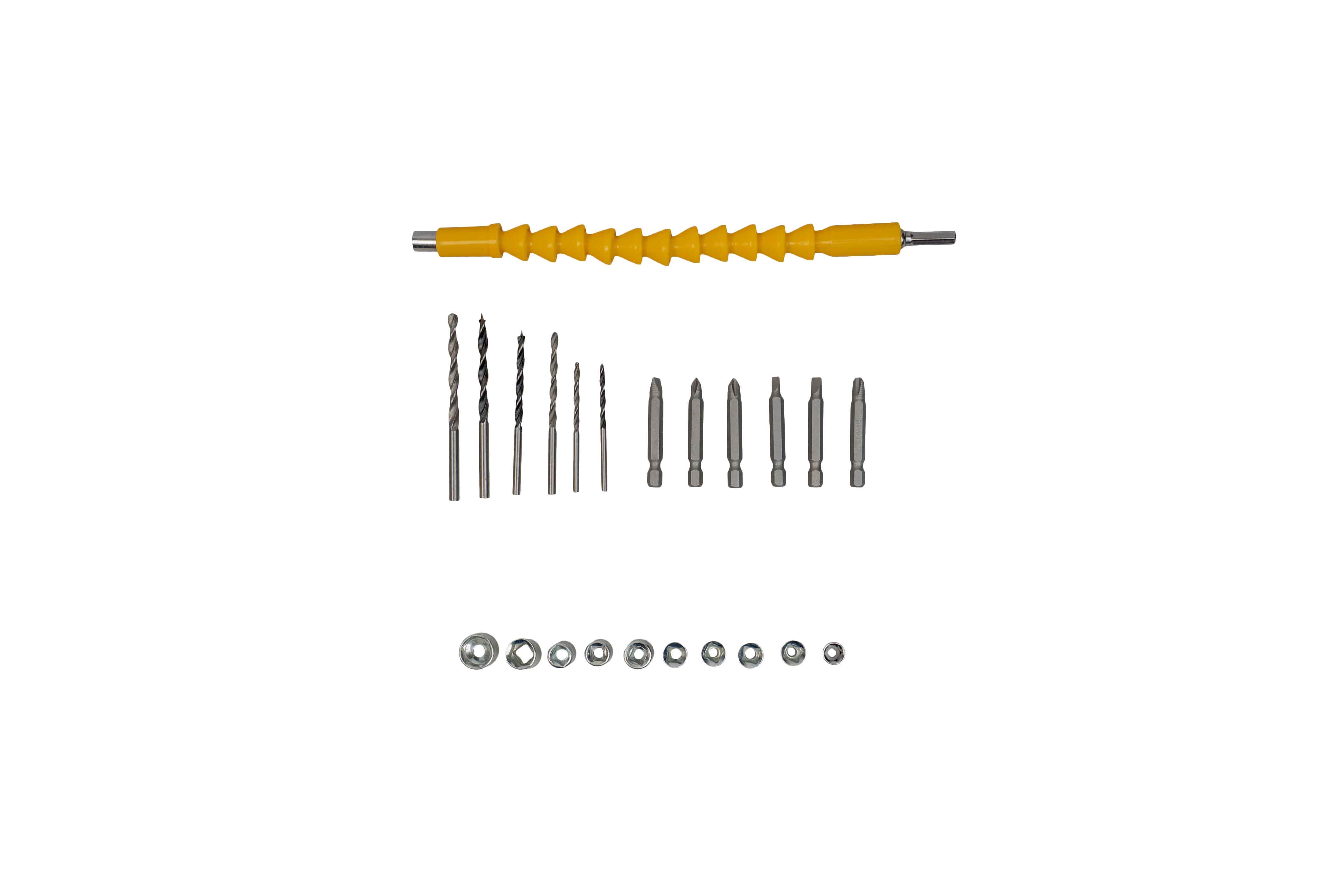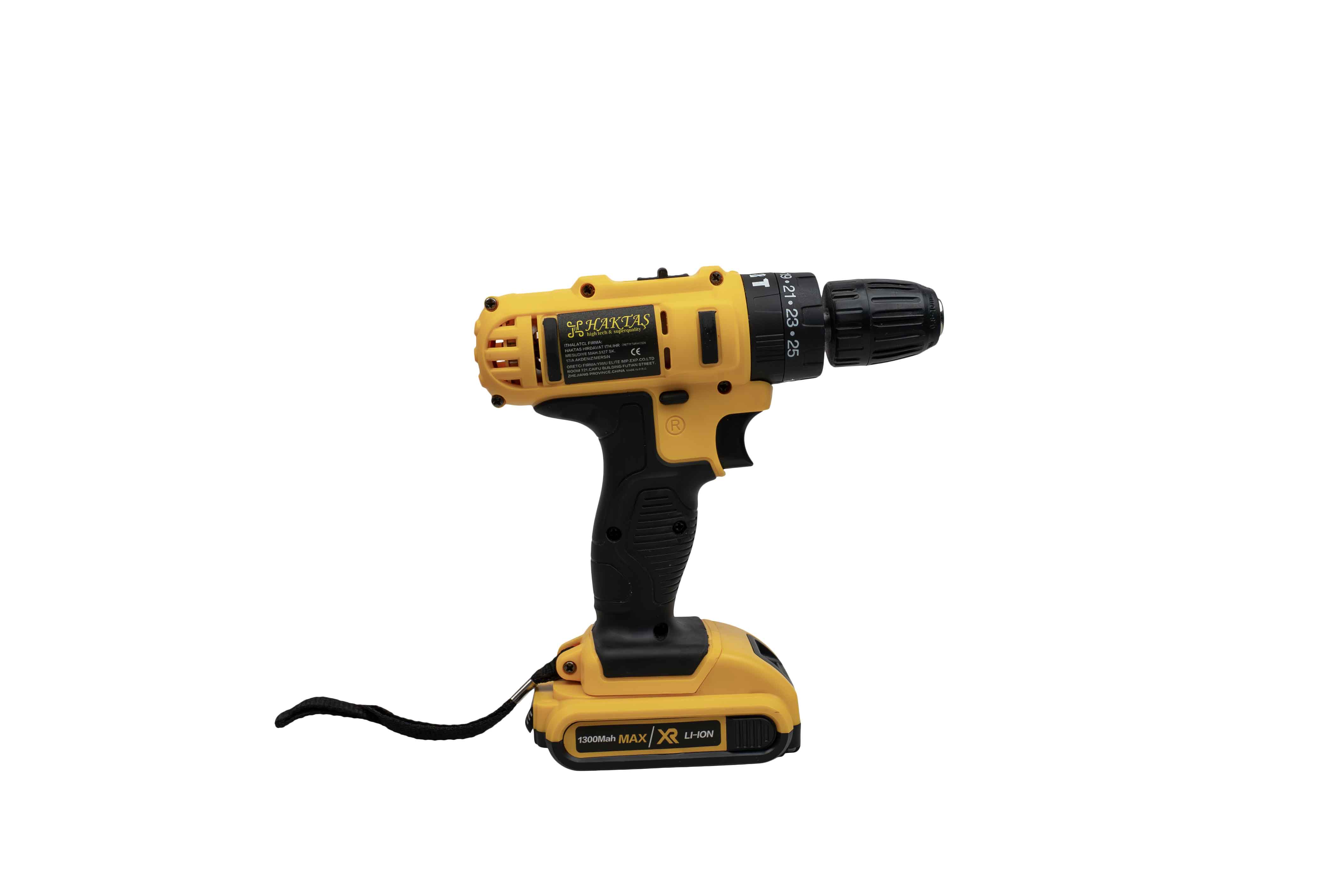 21V darbeli matkap. 2 vitesli, 13 Nm tork gücü, 10mm mandren ve 25 adet yedek parça ile ev ve atölye işleri için başlangıç seti.
